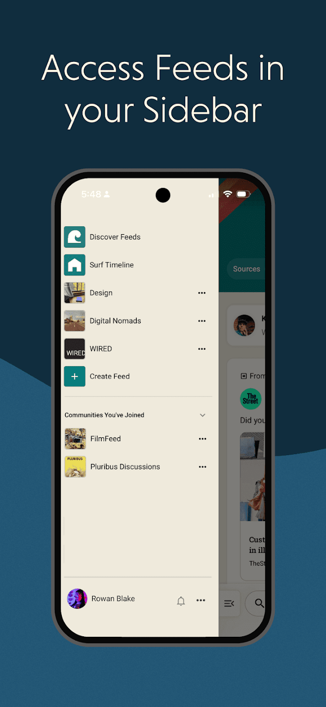 People, publishers, organizations and communities can design a custom feed for themselves or others that share an interest. It takes just a few steps: Select +Create a Feed in the Surf Sidebar, name your feed, add a community hashtag and add sources like social profiles from Bluesky, Threads and Mastodon, YouTube channels, podcasts and RSS feeds. Your Surf feed can be shared on the web, serving as a resource for others or a dedicated space for conversations around any topic. Get started at https://surf.social.